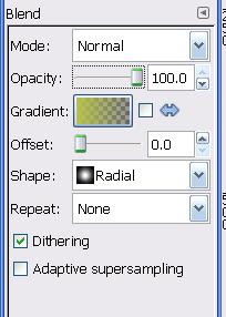 4) In the paths tool box, click the Selection from Path" button. Create a new layer and name it "Ray 1." Get out the gradient tool and use these settings. Use #b7c14d for the foreground color.
