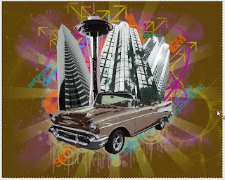 9) After you've fully outlined your car with the path tool, press enter and you should get a selection. CTRL-I. Delete. Select > Deselect. Now you should have a nice pretty car all rendered out. Don't crop out what may be in the windshield or other windows. Just leave that there. Resize your car and place it like mine.