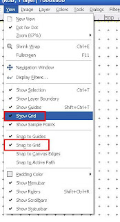 2) For the background, we have to create a sun ray effect. In Photoshop, this is fairly easy seeing as one of the preset custom shape tools includes a sun ray shape. Gimp does not have this, so we'll do it manually. Get out the path tool. To make sure we will get the lines even, we will want to use the grid. Go to View > Show Grid. We will also want the snap to grid feature, so be sure to click "Snap to Grid" as well.