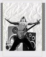 9) Copy the selection (provided everything is in one layer) and paste it onto the texture we made earlier. Lower the opacity of the texture and give the background a color of your choosing. Position the image of the person and the speakers toward the bottom left, and give it a drop shadow by going to Filters > Light and Shadow > Drop Shadow. Play around with the settings until you find something you like. I also added some notes by drawing them with a brush and adding the paper and drop shadow to it like before.