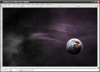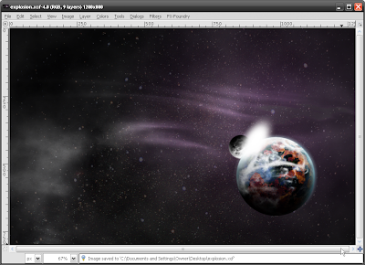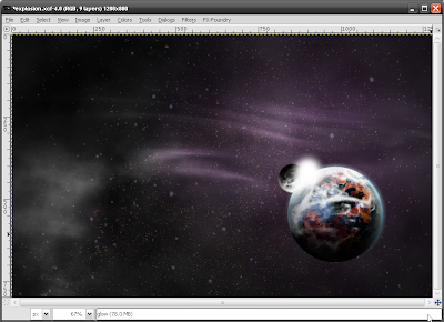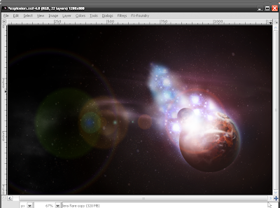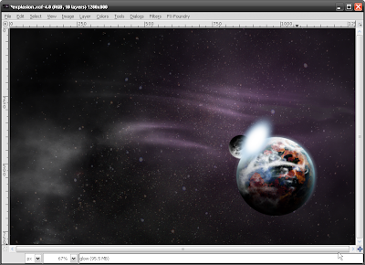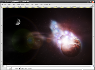 Here's a new tutorial in Gimp for ya guys. Today I'm going to teach you how to create a fiery space explosion in Gimp based on a tutorial by Collis at PSDTuts. Here is what we are going to create: