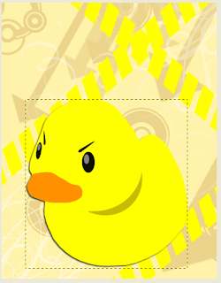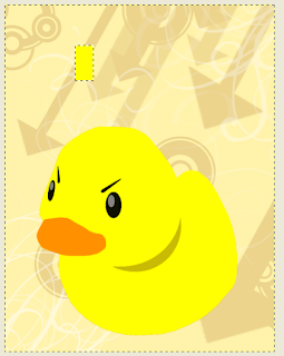 12) Now for the yellow bars that are placed across the image. These bars are manually created. Create a new layer between the "ducky" layer and the "foliage" layer. Get out the rectangular select tool. Create a selection and fill it with whatever color your ducky is. For me, it's #ffff01. After you've filled it with your color, deactivate the selection.